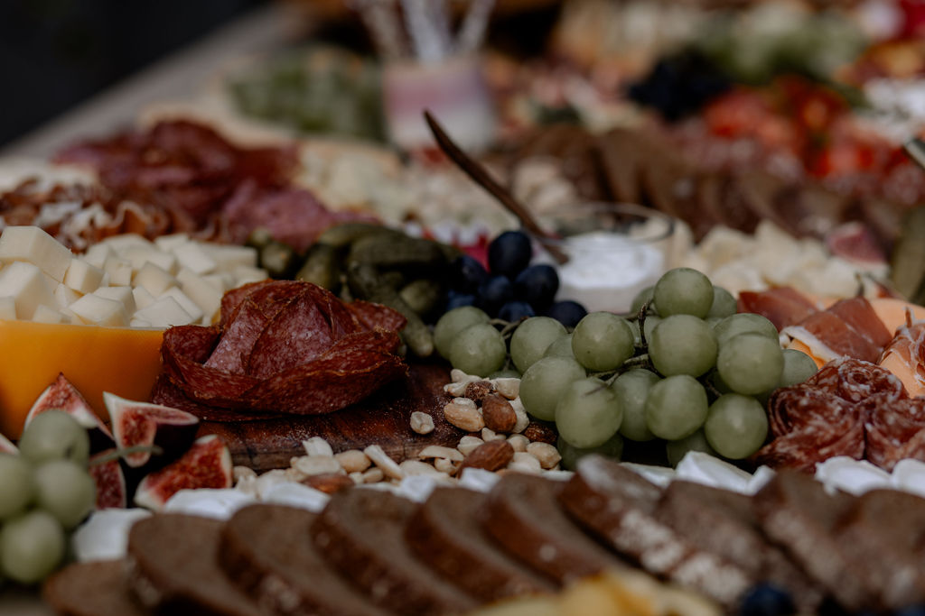Each display is hand-built on site, thoughtfully layered with colors, textures, and flavors that complement one another. From the placement of a fig to the fold of prosciutto, every detail is chosen with care.